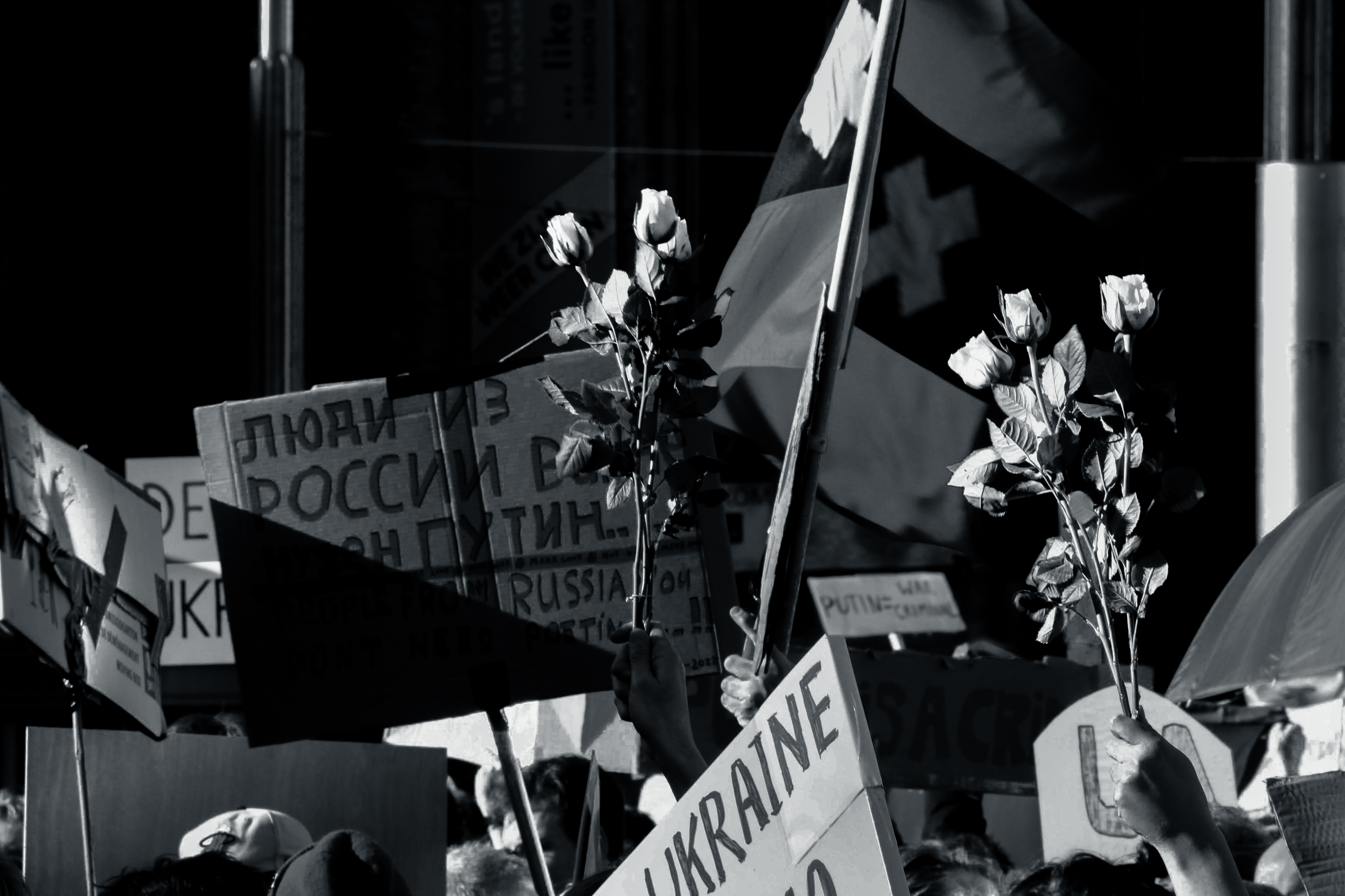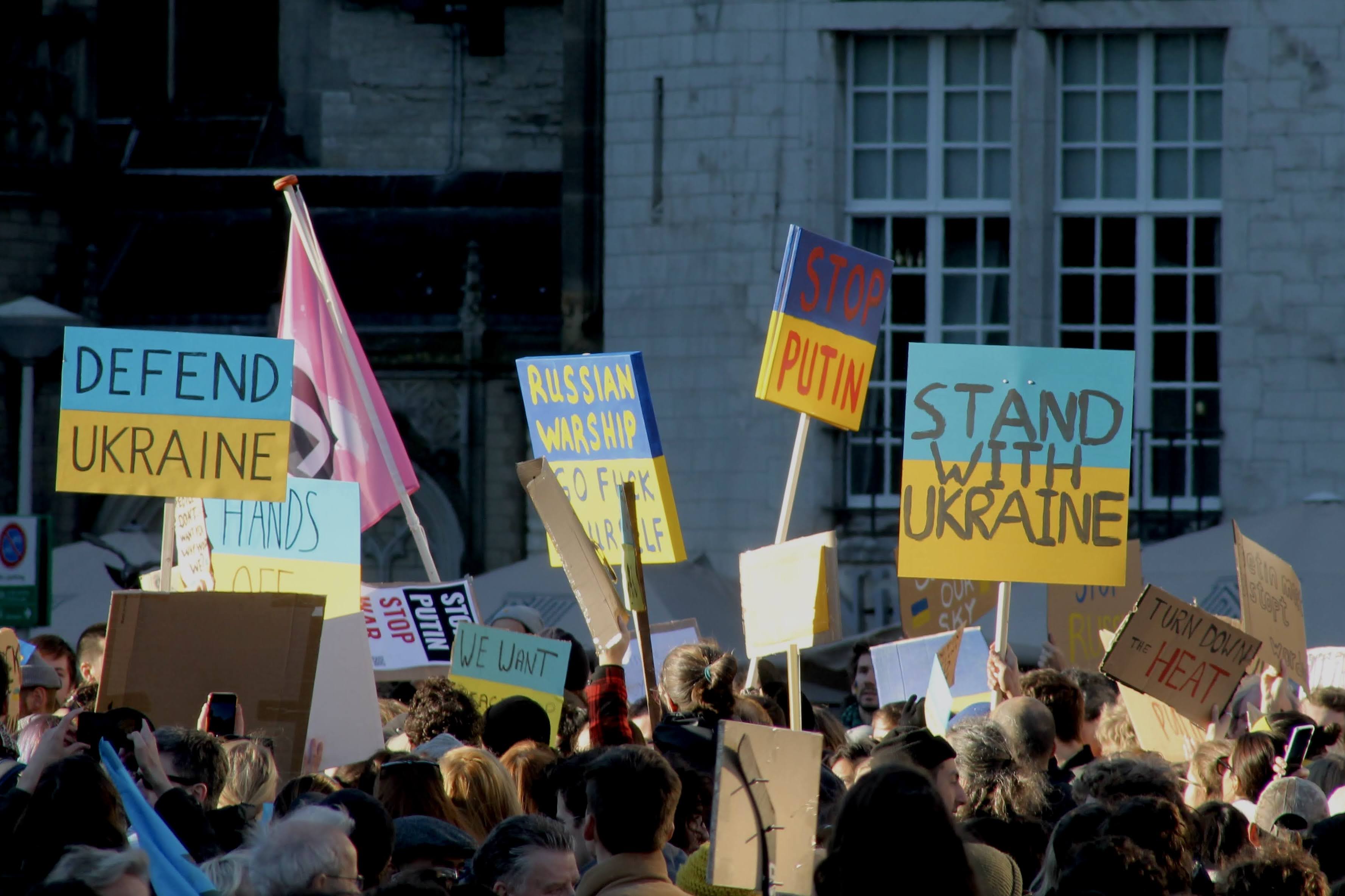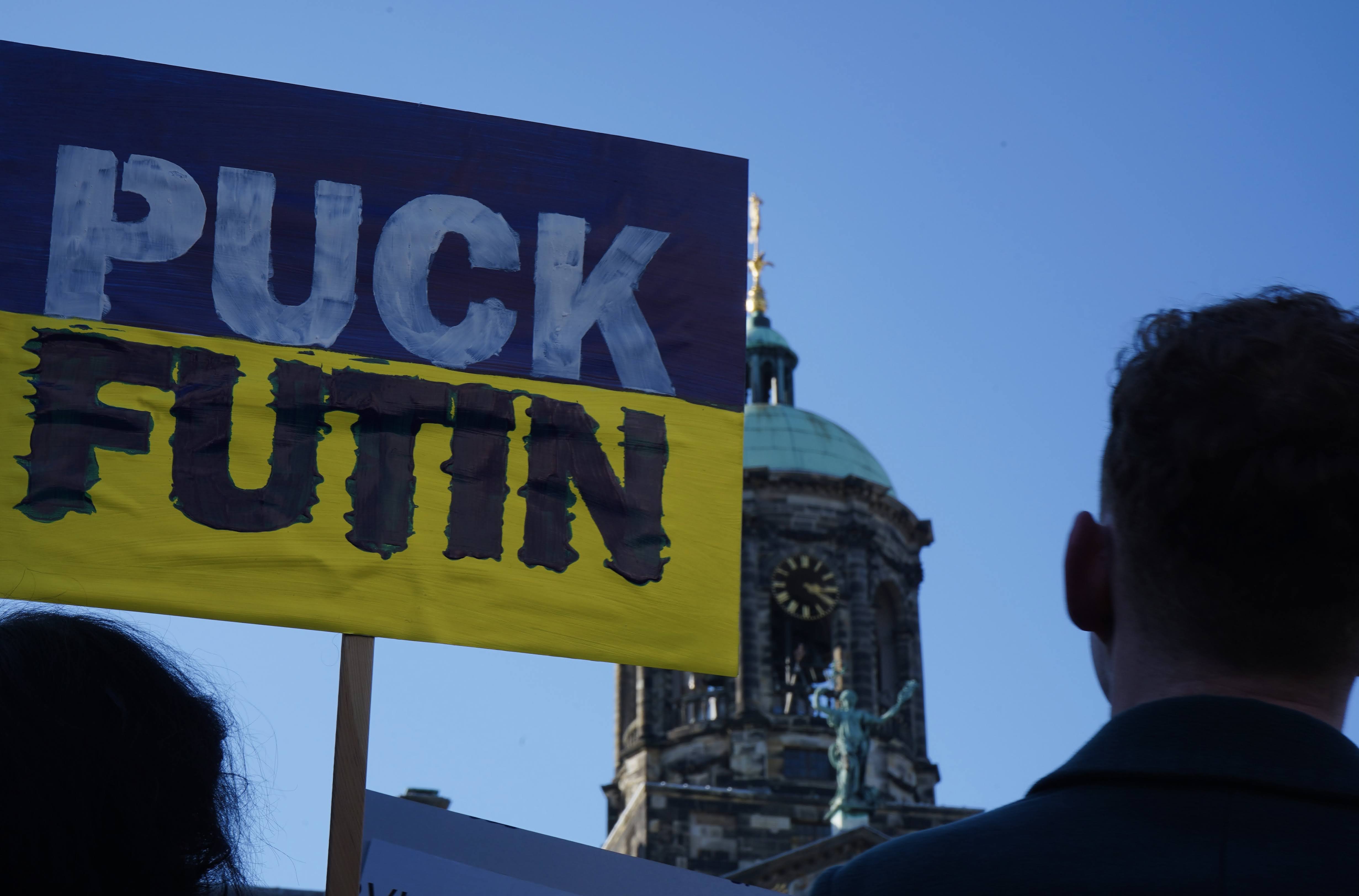 Tijdens mijn studie journalistiek fotografeerde ik voor mijn portfolio nieuwsfotografie het protest op de dam tegen de oorlog in Oekraine.